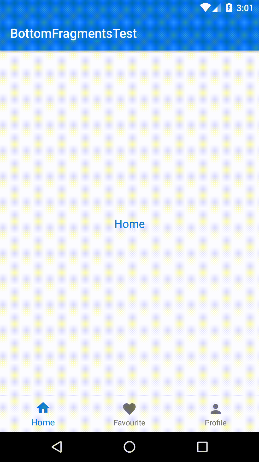 三个Fragment的布局文件都是简单的一个居中的TextView,分别显示Home、Favorite、Profile以示区别.